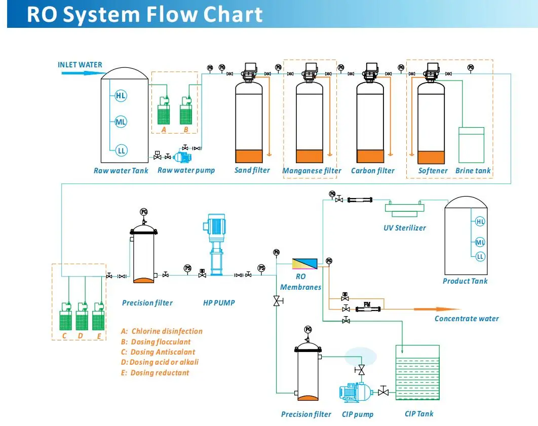 Function: The reverse osmosis equipment that can be used to filter tap water, river water, groundwater, well water which TDS is less than 3000Pppm.The purification of RO machine can reach 96-99%.